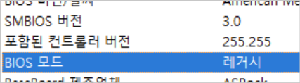 3. 시스템 정보 중 빨간색 화살표가 가리키는 것이 UEFI이면 Legacy BIOS 상태로 설치가 되지 않은 것입니다.